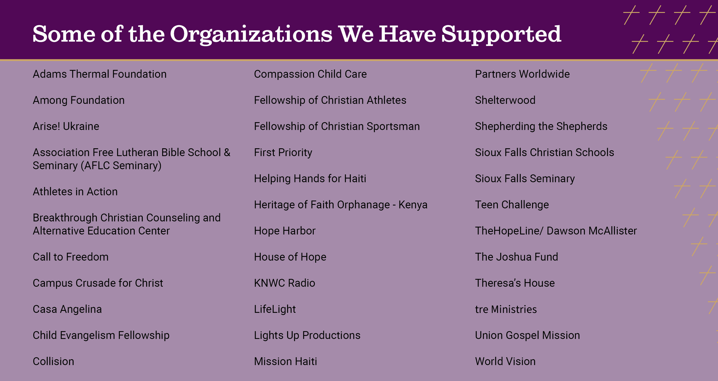 Through these gifts, our ministry partners are able to spend less time fundraising and more time expanding the Kingdom of God locally and internationally.